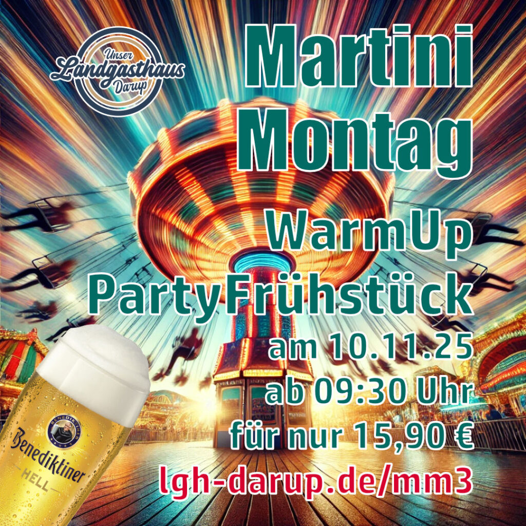 Am Montag, 10. November, von 9:00 – 14:30 Uhr laden wir euch herzlich ein zum gemütlichen Partyfrühstück im Landgasthaus Darup!